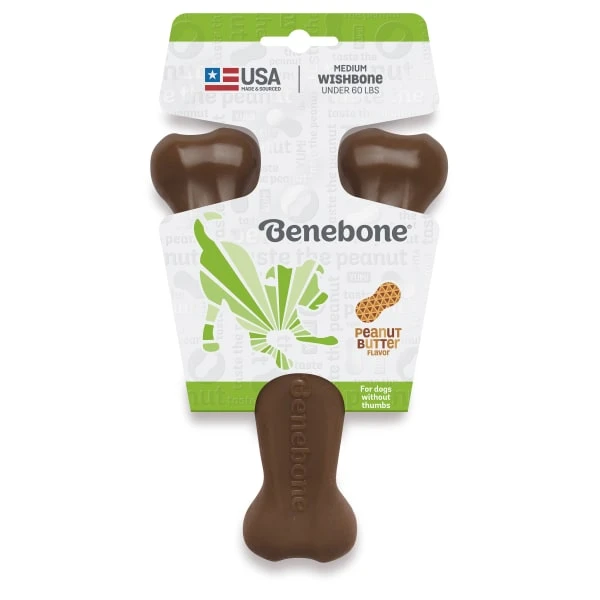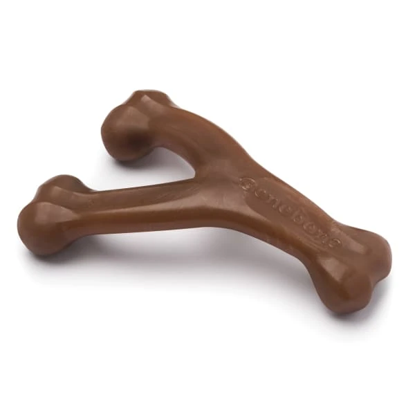Dogs love to chew, especially on stuff that tastes like real bacon. The Wishbone is easy to handle, tastes awesome, and stands up to heavy chewing. At Benebone, we started with the premise that dogs experience scent and flavour in a way we can’t even grasp. So we ditched the neon colors and loud squeaks. Inspired by a dog’s powerful sense of smell, we developed a long-lasting durable chew that’s jam-packed with real bacon. Once your dog takes a bite of our USA-made chews, he’ll be hooked. We’re Obsessed with Safety Too. Wonder if Benebone is right for your dog? Here’s what you need to know. Since it’s hard, it’s important that your pup has strong teeth. If you’re unsure, check with your vet. Nobody likes an unexpected trip to the dentist. Keep an eye out for wear and tear. Within a month or so, we find that most dogs chew Benebone into submission. See the wear page on our website for helpful photos to determine when to replace yours. Keep away from households with peanut or other allergies. What’s Inside? Nothing but Nylon and Real Bacon for Tantalizing Flavour.