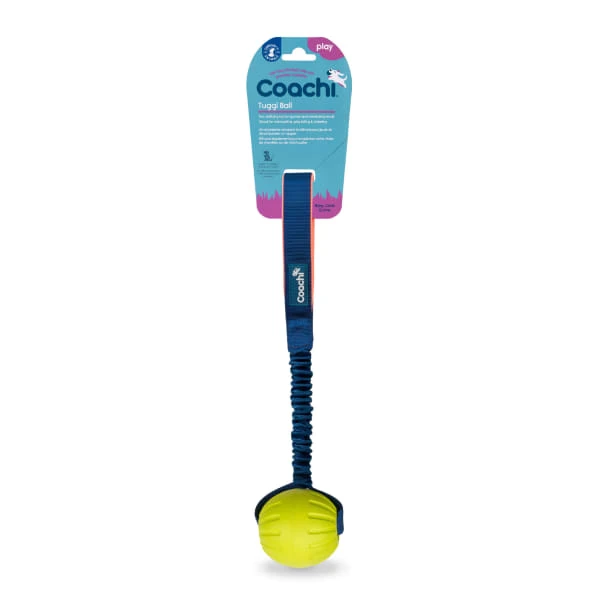 The Coachi Tuggi Ball is a super tough foam ball with stretchy bungee handle, great for reward, fetch and tug. The soft neoprene handle makes it comfy for you too! It can also help interrupt play biting & chewing. This super-fun safe foam toy is great for ball-loving dogs! With its bungee handle and lightweight ball, tug and retrieve games are gentle on your dog’s neck and your arms. These super stimulating toys are a great alternative and or addition to food rewards, especially for those high energy dogs who love to play. Harness the power of play and become your dog’s best friend. The Coachi reward toys have been designed for you and your dog to have fun together whilst training. They are great for improving recall, discouraging chasing and perfect for reducing puppy mouthing and biting. Maintain the energy and enthusiasm by only using these toys as part of interactive play. Also good for dogs who are not treat motivated or need to watch their waistlines! The Coachi range was created by the experts at Company of Animals, it is designed to focus on promoting effective, humane and positive methods, making training simple and rewarding for both owners and their dogs.