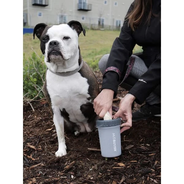 The Dexas MudBuster is a new, innovative and easy way to rinse your dog’s dirty or muddy paws, before they track it all over the house! Using the MudBuster is easy: muddy paws go in, clean paws come out! To use, add a little water to the base of the Mud Buster. Then, insert the muddy paw, do the twist, dab the paw dry, and repeat for 3 more feet! The Mud Buster features an array of soft, gentle, thick silicone bristles inside an easy-to-grip tumbler. Designed to be gentle on your dog’s paw, the silicone bristles will gently loosen mud and dirt, keeping the mess in the MudBuster and not in your home or car. The Mud Buster is great for trips to the park, hiking, running or even playing outside. The Small MudBuster is specially sized for small and toy breeds. BPA free!