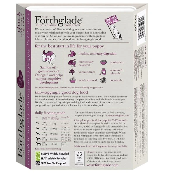 A nutritionally complete food that can be fed on it’s own, added to Forthglade cold pressed dry food or used as a tasty topper.If mixing with other foods please adjust quantities accordingly. When using Forthglade for the first time, introduce it gradually to your dog over five days. It’ll take between four to eight weeks to see the benefits. Make sure fresh drinking water is always available.