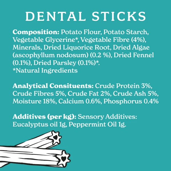 Complementary pet food for Adult dogs 1 year +. Dental Sticks should only play a small part in your dogs balanced diet.