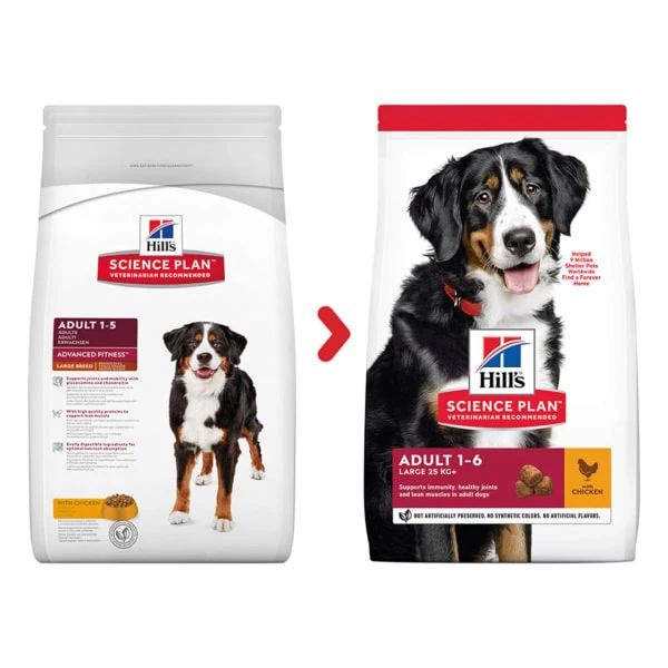 Hill’s Science Plan Large Breed Adult dog food with Chicken is specially formulated to fuel the energy needs of large breed dogs during the prime of their life.Supports joint health with glucosamine & chondroitin. Omega-6s & Vitamin E for beautiful skin & coat. High-quality protein for lean muscles