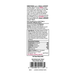 KONG Peanut Butter Easy Treat is a delicious treat that delights all types of dogs while providing an easy no-mess solution for pet parents. Made in the USA, this highly-digestible and trans-fat free treat is an enticingly delicious addition when added to a stuffed KONG. A uniquely designed nozzle easily controls the amount of KONG Easy Treatβ’ while also having the added benefit of a convenient, no mess stuffing solution. Want to make your stuffed KONG last longer? Freeze a stuffed KONG, topped with KONG Peanut Butter Easy Treat for a longer-lasting, mind occupying challenge. No Refrigeration required.
