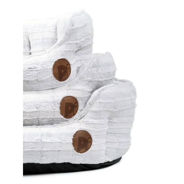 - The eye-catching white plush bed with silver-grey tones is made from a wonderfully soft plush and filled with a super soft poly fibre