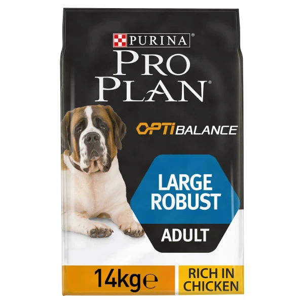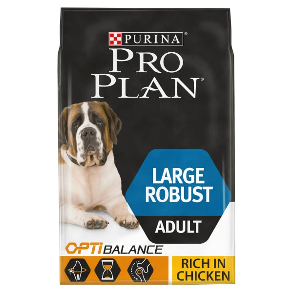 Purina Pro Plan Dog Large Adult Robust with OPTIBALANCE rich in chicken dry food is a complete food for large breed, adult dogs with active lifestyles.