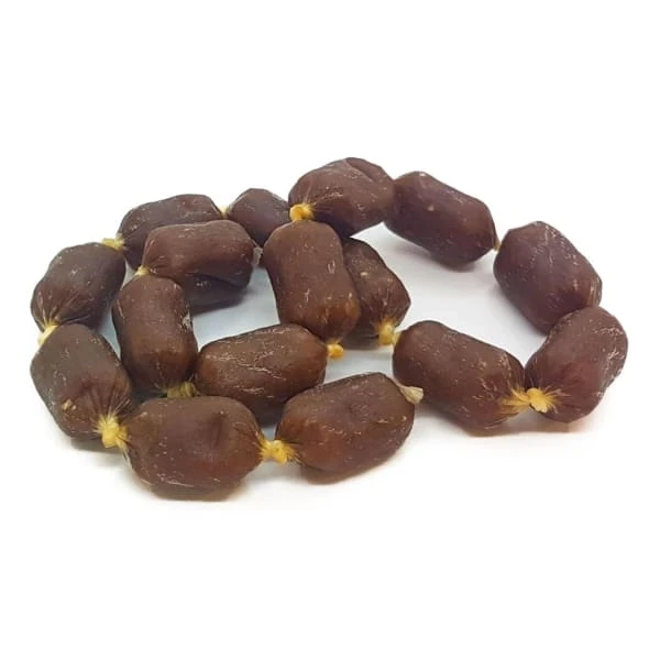 Luxury treats for dogs. Mini air-dried salmon sausages. A proper treat for your hound.