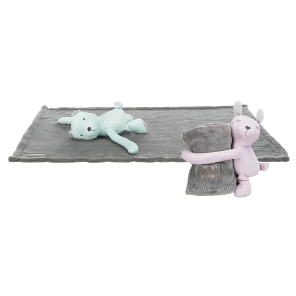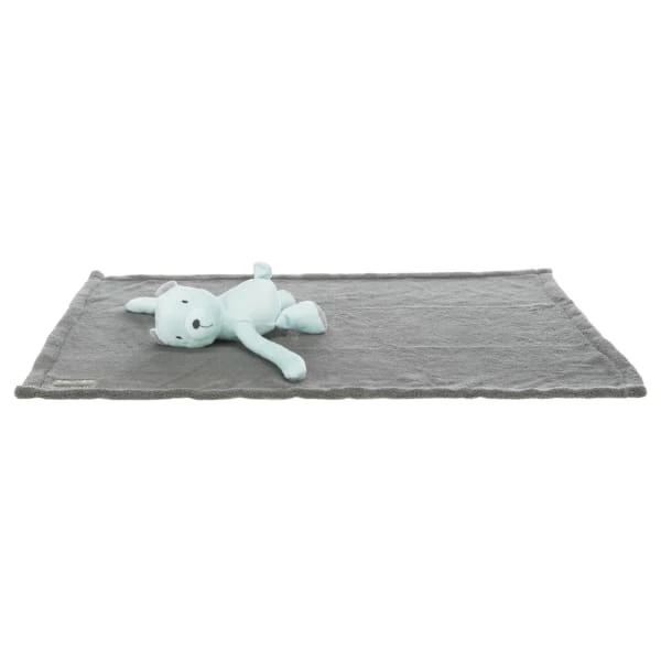 Junior cuddly set blanket/bear, plush, 75 × 50 cm, grey/mint.