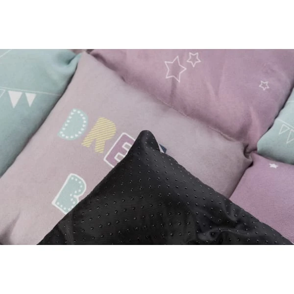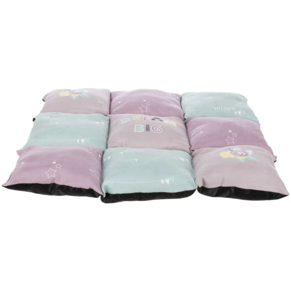 Junior patchwork lying mat, 60 × 60 cm, light lilac/mint/pink.