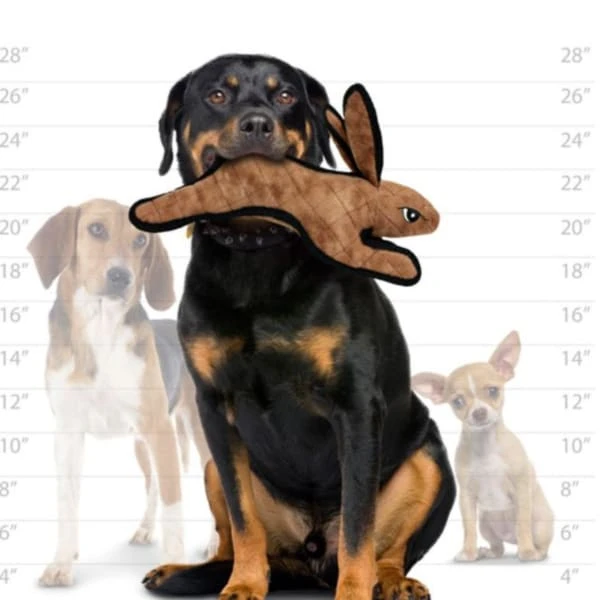 Your Pooch will love Tuffy Rabbit, a fun and adventurous toy! With a Tuff rating of 9, this bunny is super Tuff and great for interactive play with large or multiple dogs.