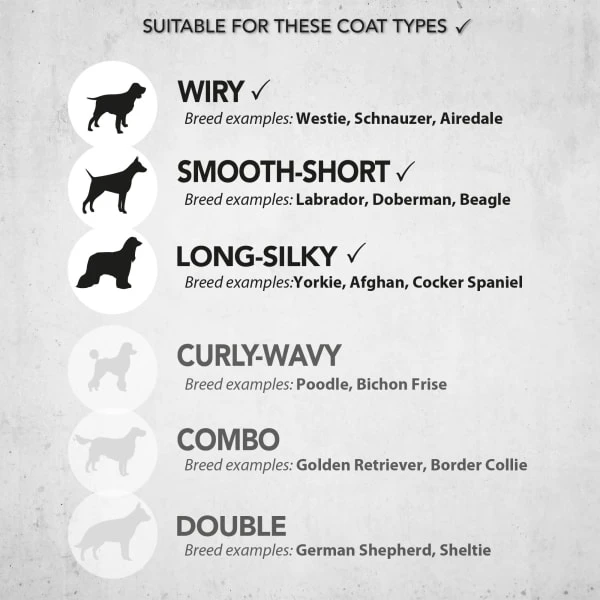 For use on main areas of the coat, a trimmer should be used around eyes, muzzle and sensitive areas.
